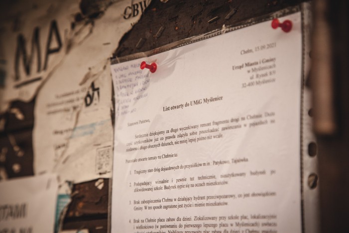 Według mnie na Chełmie jest bardzo dużo widocznych niedociągnięć ze strony urzędu. Wskazują na to punkty zawarte we wspomnianym liście. Każdy z nich opisuje konkretne sytuacje. Większość z nich potwierdzają posiadane przeze mnie dokumenty i korespondencja z różnymi instytucjami. Chciałbym, aby Chełm jako miejscowość zaistniał w świadomości urzędu, żeby urzędnicy zaczęli się nim zajmować.