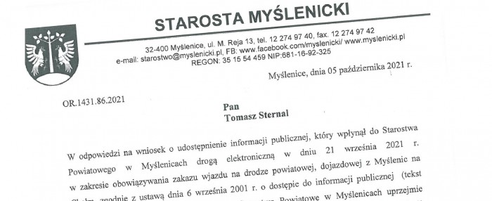 Pełna odpowiedź starosty w tej sprawie: