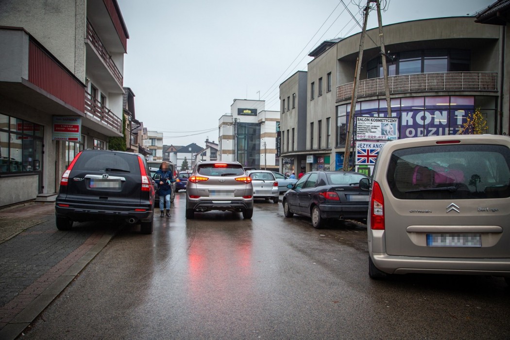 W Myślenicach robi się coraz ciaśniej. Parkujemy na przejściach dla pieszych, skrzyżowaniach, chodnikach, drogach pożarowych i w miejscach utrudniających widoczność.