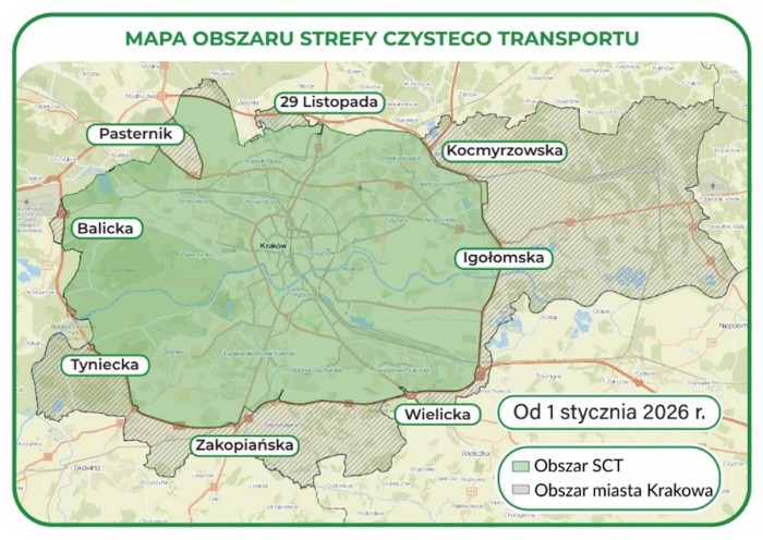 Strefa swoim zasięgiem obejmuje obszar wewnątrz IV obwodnicy, a na nim wszystkie drogi zarządzane przez Prezydenta Miasta Krakowa (nie są to ulice wewnętrzne). O ile nowe przepisy nie będą dotyczyć mieszkańców Krakowa, to kierowcy spoza stolicy Małopolski, którzy nie spełnią norm, będą musieli zapłacić za wjazd do strefy.