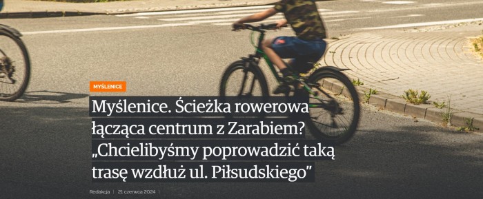 „Jestem za tym, żeby budować ścieżki. Na pewno chcielibyśmy poprowadzić taką trasę wzdłuż ul. Piłsudskiego od osiedla – do Zarabia, tak aby powstał pierwszy taki ciąg, łączący się z istniejącą już ścieżką” – w 2024 roku mówił starosta Józef Tomal (PO/FZM).