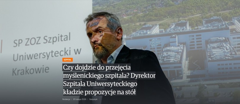 Nawiązał tym do spekulacji dotyczących łączenia myślenickiego szpitala z innymi jednostkami, a konkretnie do propozycji dyrektora Szpitala Uniwersyteckiego Marcina Jędrychowskiego, który proponuje starostwu darowiznę celową. Więcej na ten temat piszemy w artykule „Czy dojdzie do przejęcia myślenickiego szpitala? Dyrektor Szpitala Uniwersyteckiego kładzie propozycje na stół".