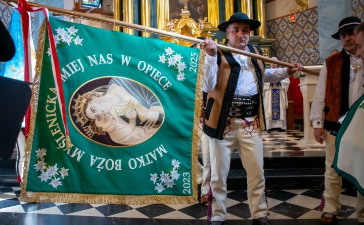 Górale Myśleniccy z poświęconym sztandarem