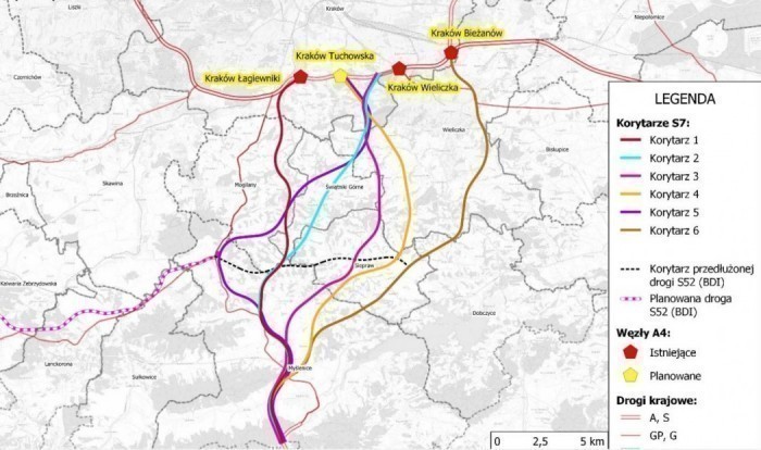 Przypomnijmy, że zakończono prace nad etapem wstępnym Studium Techniczno- Ekonomiczno-Środowiskowego (STEŚ) dla trasy S7 Kraków - Myślenice. Wykonawca zarekomendował 8 wariantów. Założono, że po ich zweryfikowaniu zaprezentowane ma zostać publicznie kilka z nich (nie mniej niż trzy).