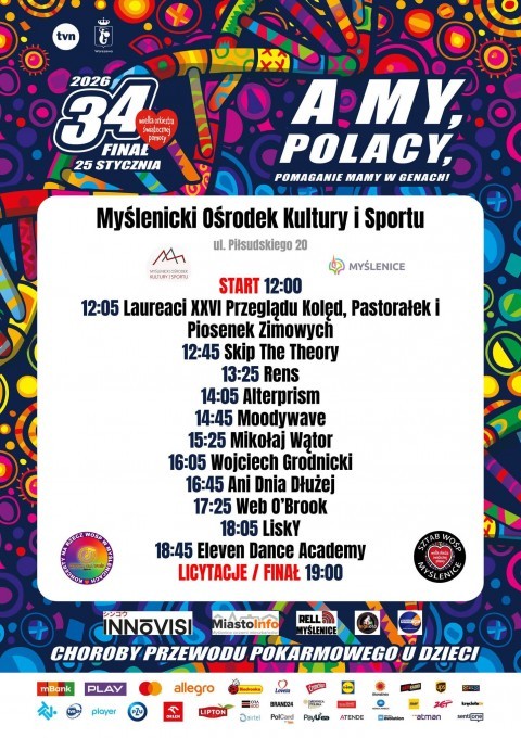 19:00 – licytacja gadżetów na rzecz Wielkiej Orkiestry Świątecznej Pomocy