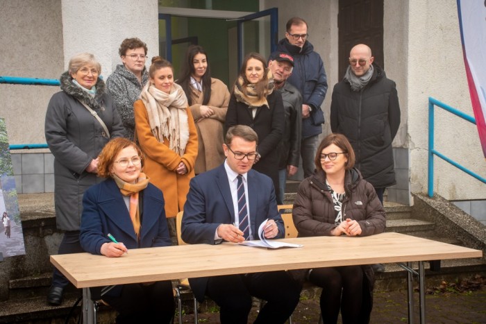 Zaproszenie na podpisanie umowy dotyczącej realizacji zadania „Budowa Centrum Opiekuńczo-Mieszkalnego w Myślenicach” w imieniu burmistrza Jarosław Szlachetki (PiS) do mediów trafiło w ubiegłym tygodniu. W poniedziałek wysłano jeszcze przypomnienie o wydarzeniu, a w sali USC o godz. 10 zebrano przedstawicieli prasy i urzędników.