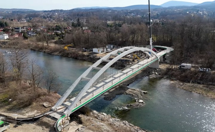 Zarząd Dróg Wojewódzkich w Krakowie prezentuje postępy prac przy budowie kładki rowerowej na myślenickim Zarabiu. Przeprawa ma połączyć dwa brzegi rzeki i wpisać się w trasę rowerową VeloRaba