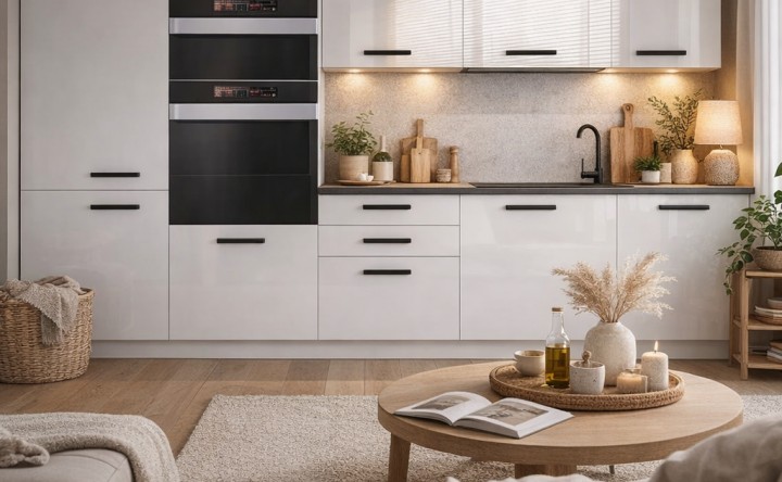 Jedną z największych zalet jasnych mebli jest ich zdolność do optycznego powiększania wnętrza. Biel odbija światło, dzięki czemu kuchnia staje się jaśniejsza i bardziej przyjazna w codziennym użytkowaniu. To szczególnie ważne w pomieszczeniach o ograniczonej powierzchni, gdzie każdy detal wpływa na odbiór przestrzeni. Jasna zabudowa pozwala stworzyć wnętrze, które wydaje się bardziej otwarte i uporządkowane.