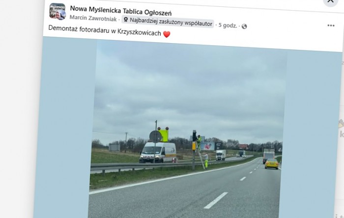 Fotoradar w Krzyszkowicach to rekordzista Polski. W pół roku odnotował 51,7 tys. przekroczeń prędkości. Po otwarciu tunelu pod Zakopianką zostanie zdemontowany i przeniesiony do innej miejscowości