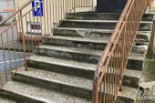 Zgłoszenie dotyczy nie tylko stanu technicznego, ale też braku dostosowania budynku do potrzeb osób z ograniczoną mobilnością. „Niejednokrotnie byłem świadkiem jak osoby starsze pokonują tę przeszkodę sapiąc, trzymając się poręczy” – dodaje autor listu.