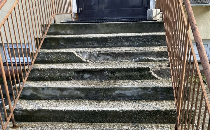 Do naszej skrzynki kontaktowej trafiło zgłoszenie dotyczące stanu schodów przy ul. Słowackiego, gdzie nzajduje się m.in. Centrum Usług Społecznych w Myślenicach.