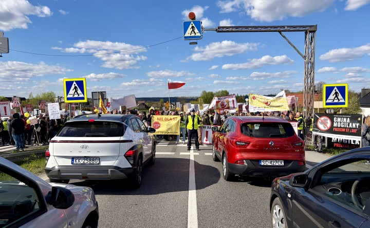 Głogoczów. Trwa blokada Zakopianki. Mieszkańcy protestują przeciwko drodze S7 Kraków-Myślenice